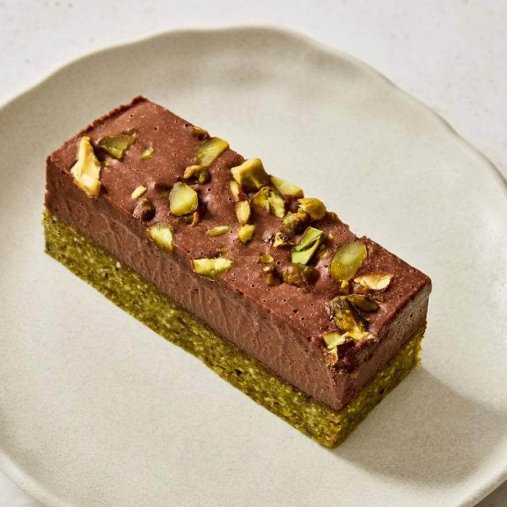 Et deilig og næringsrikt kakestykke med fyldig smak av sjokolade og pistasj. Laget med bare bra ingredienser på vårt eget kjøkken!